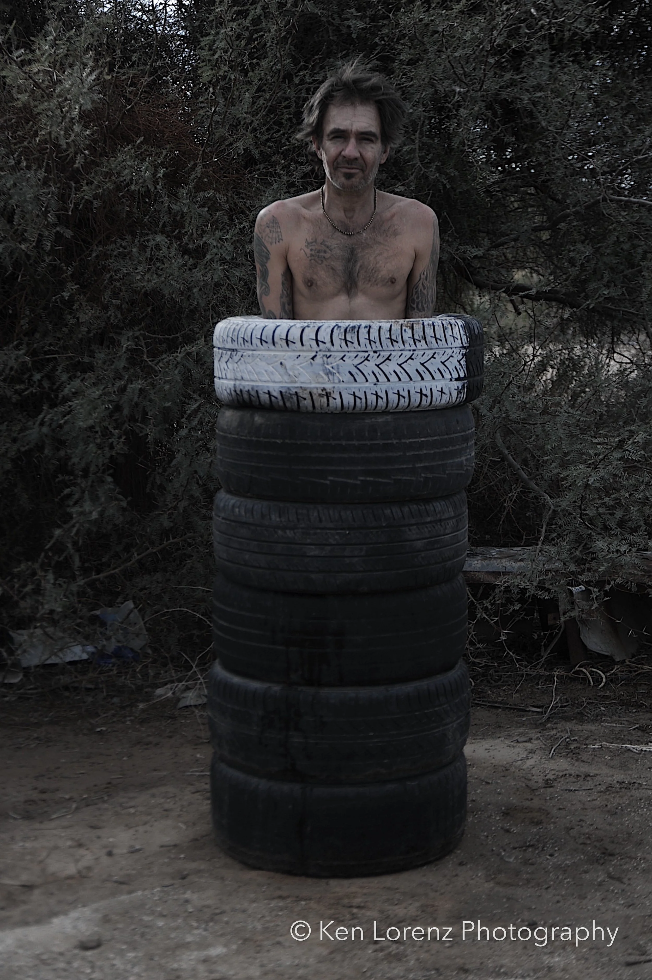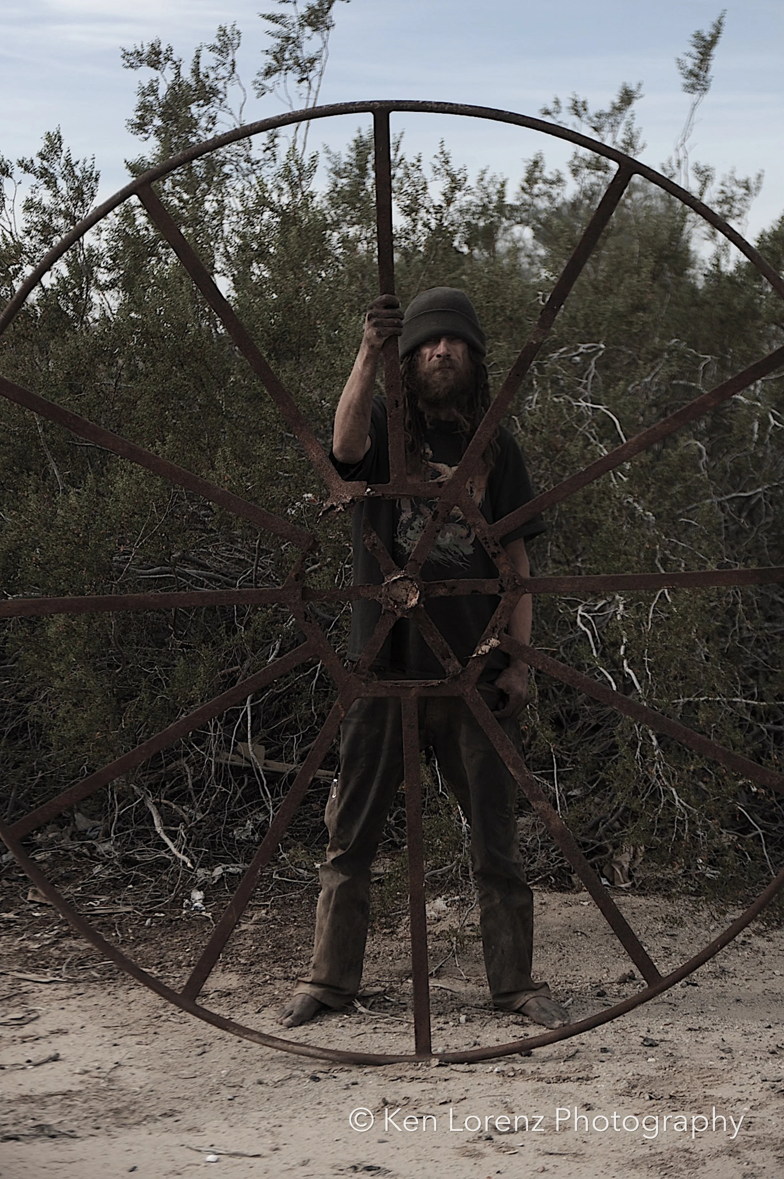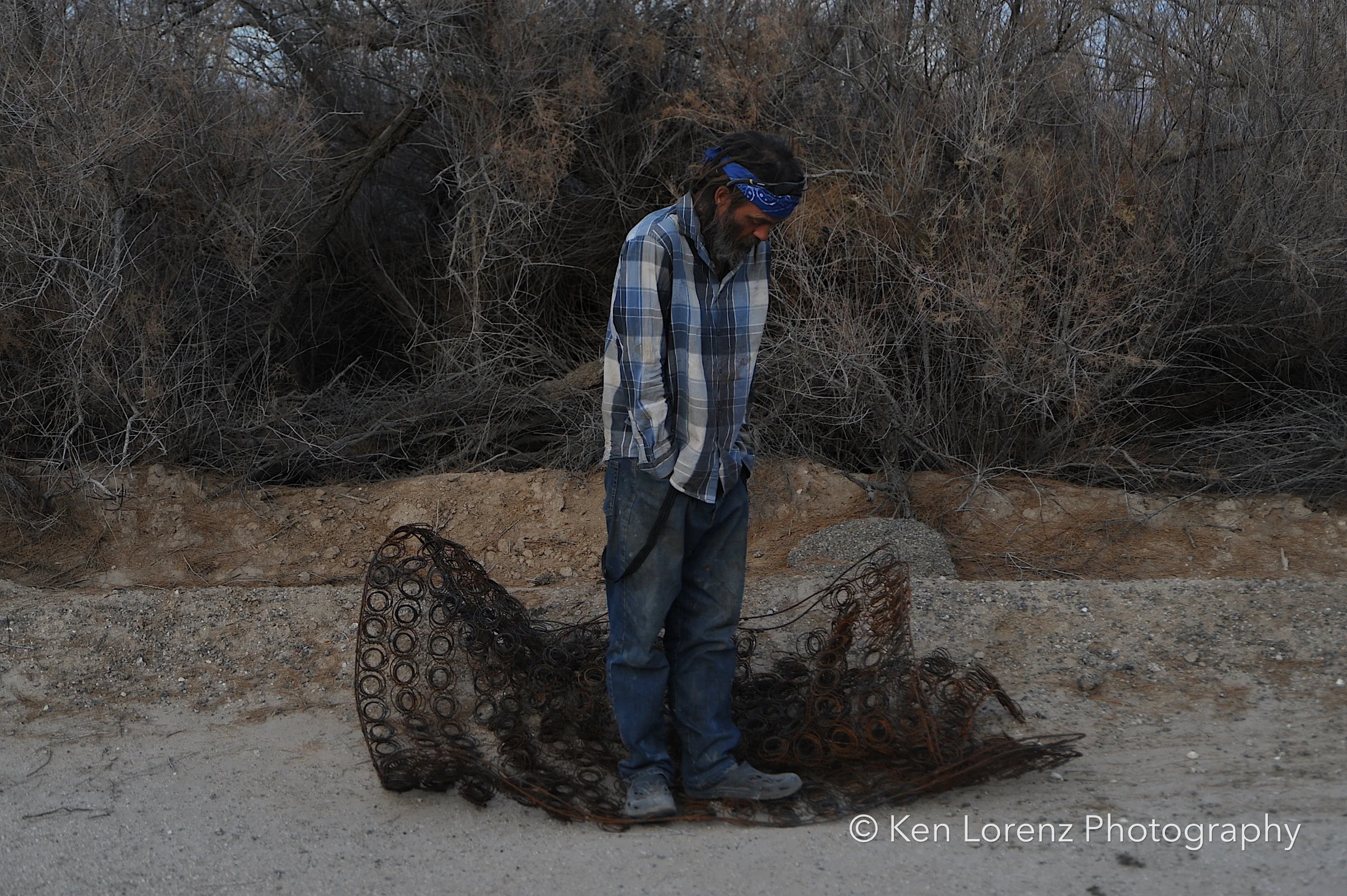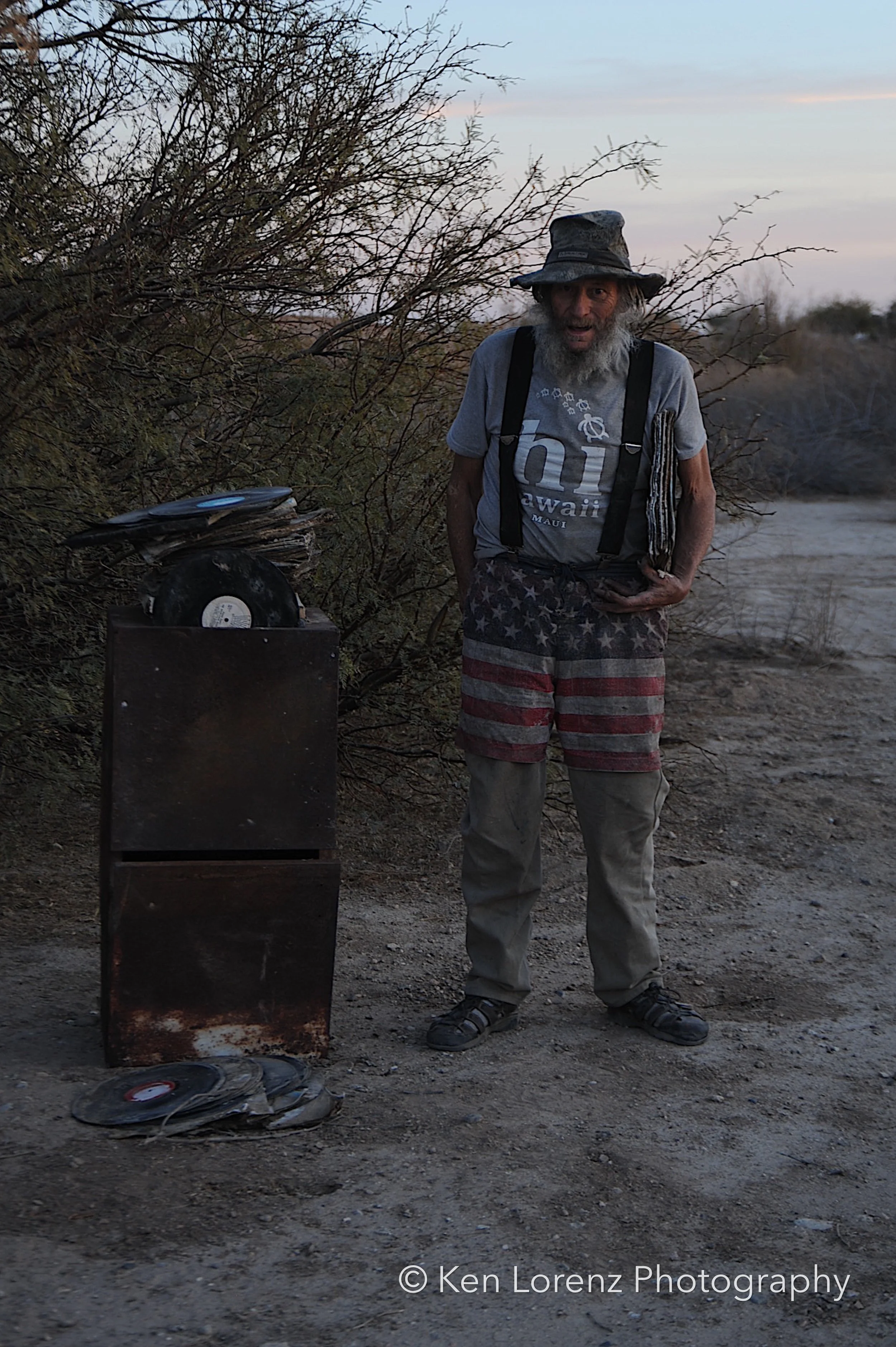 After five years of documenting the area, certain patterns emerge. There is, metaphorically speaking, a revolving door of travelers who arrive in September and vanish by June. Why? It might have something to do with the desert summer, when June through August temperatures soar to a sweltering 120°F. The only refuge lies in the Coachella Canal, running east to west along the Slabs, where residents bathe and swim. Yet this reprieve comes with its own dangers—the rattlesnakes that also flourish in the heat.