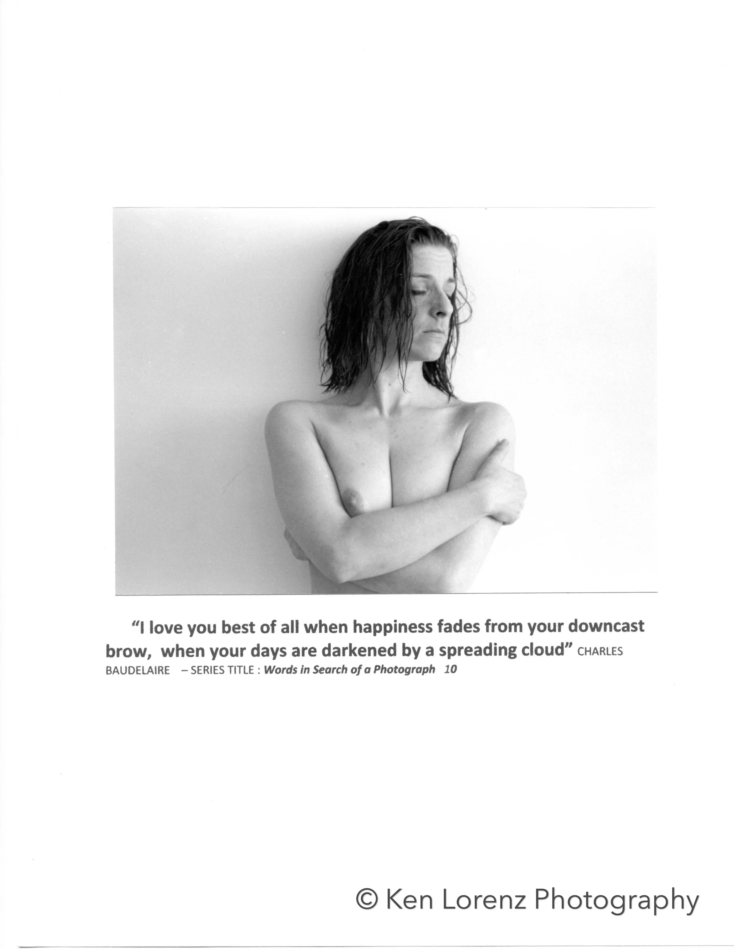 This is a new and still-unseen body of work, consisting of 42 photographs in total, with 12 completed and presented here. The prints vary in size and are mounted on white, acid-free 8-ply board, then framed in minimalist flat black metal — a quiet presentation meant to allow the interplay of image and language to remain the focus.